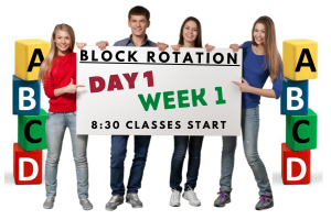 For the 1st week, the block order is ABCD, Tuesday to Friday! We will continue to follow the block order rotation as outlined. To find the daily block order you can refer to the calendar on our website.